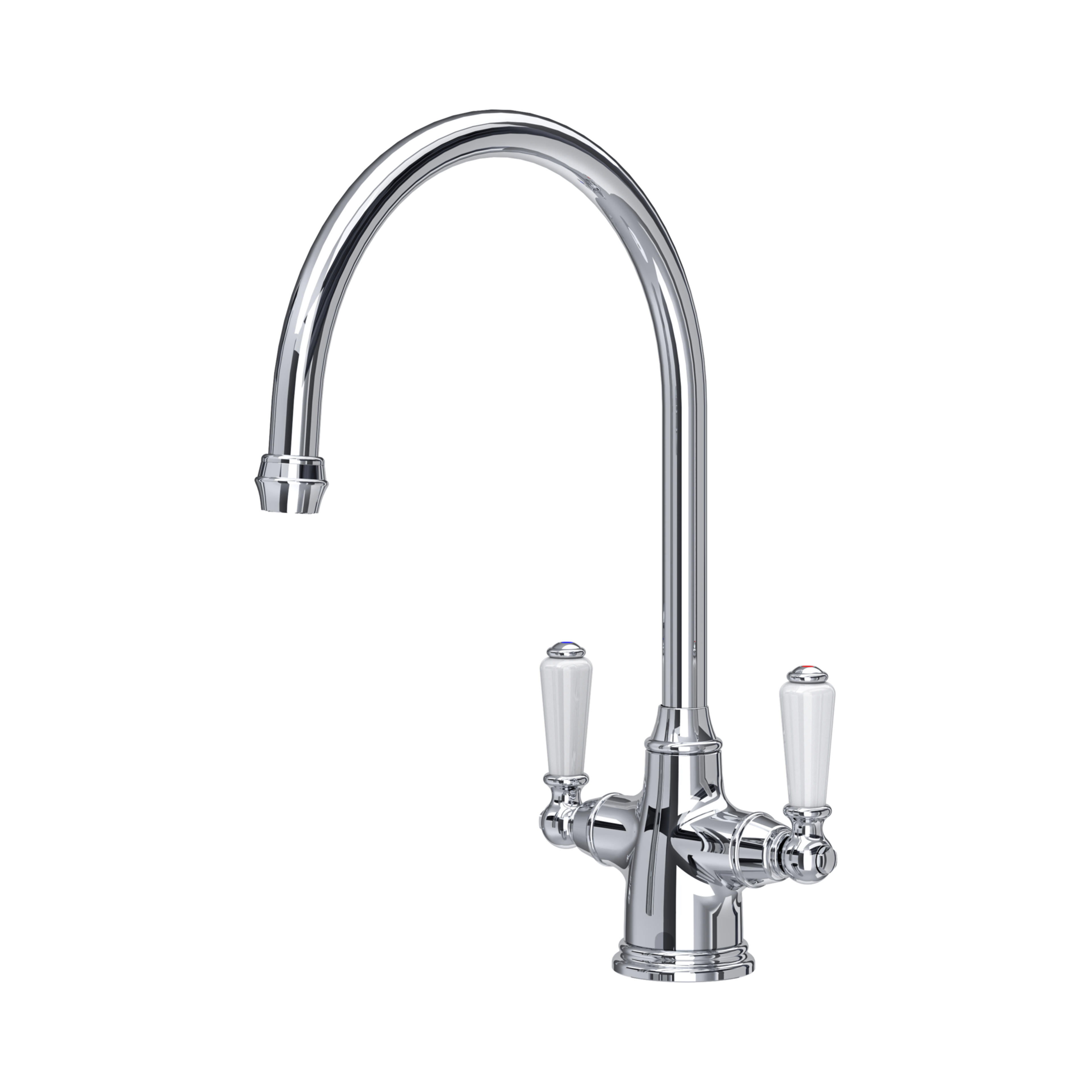 Die Einloch-Mischbatterie aus der Kollektion Phoenician ist eine zeitlose Ergänzung für eine Küche im traditionellen oder Landhausstil und gehört zu unseren meistverkauften Modellen. Die attraktiven Porzellanelemente auf den zwei Hebelgriffen machen sie zu einer unverwechselbaren Armatur von Perrin & Rowe.