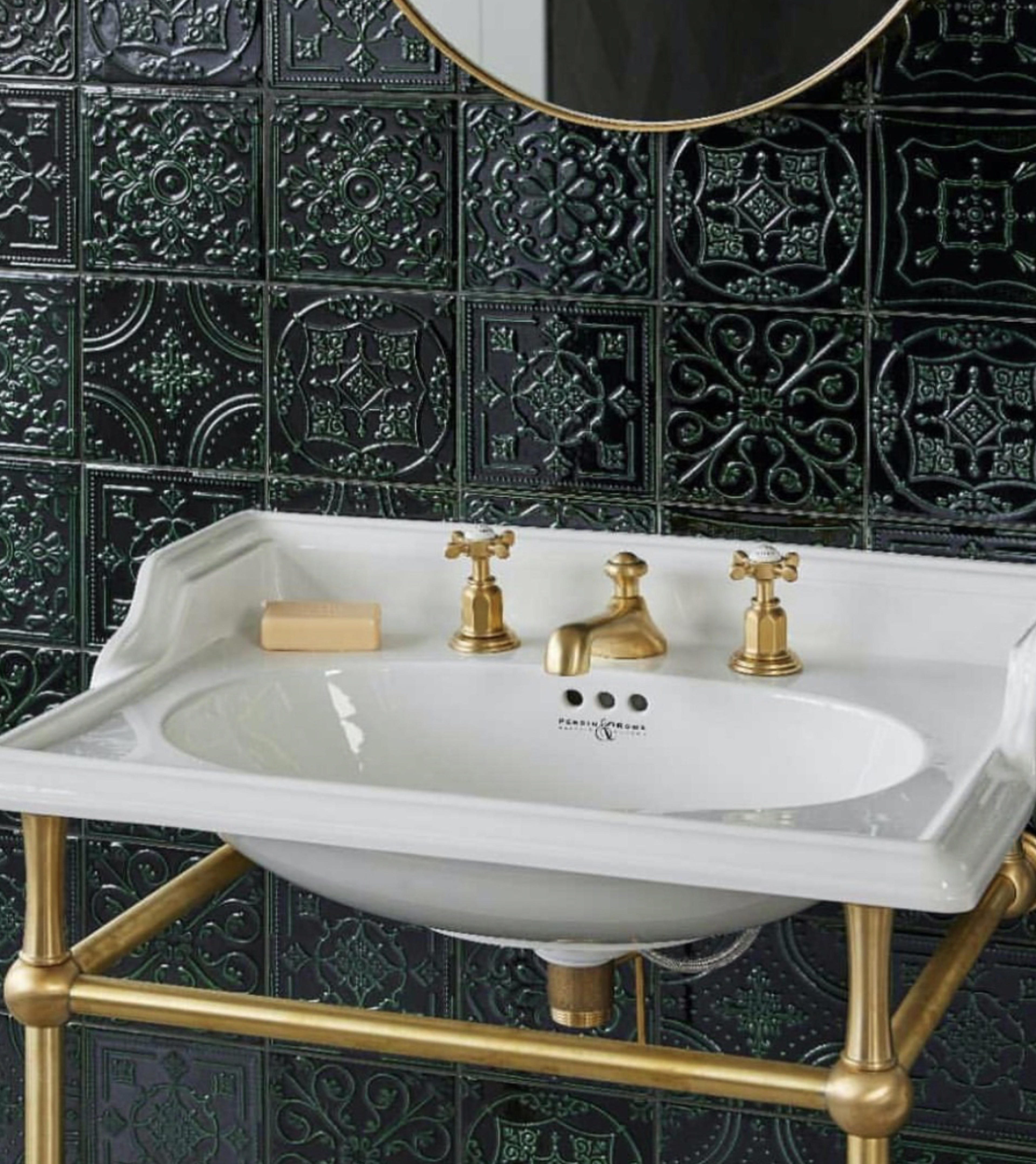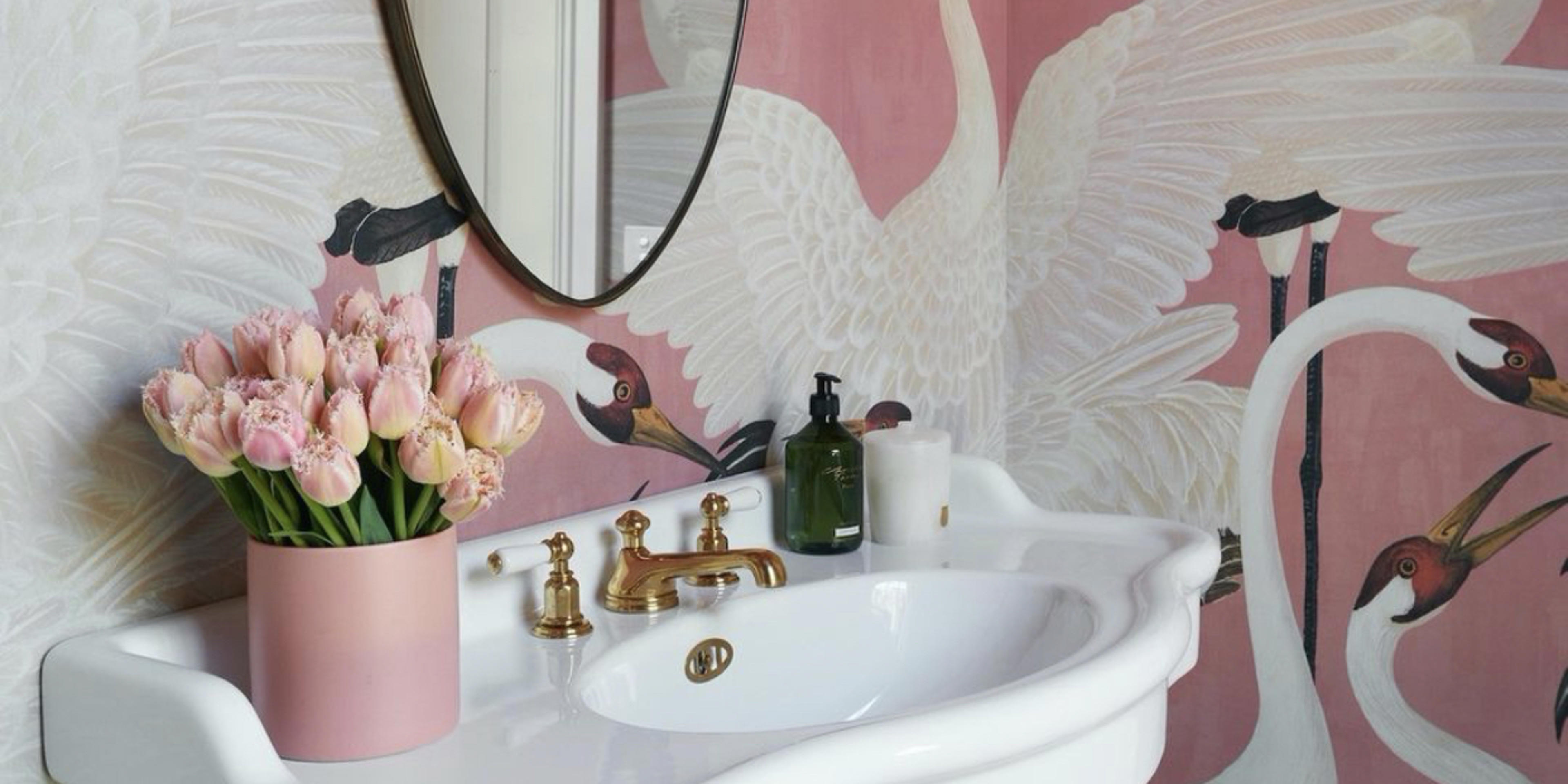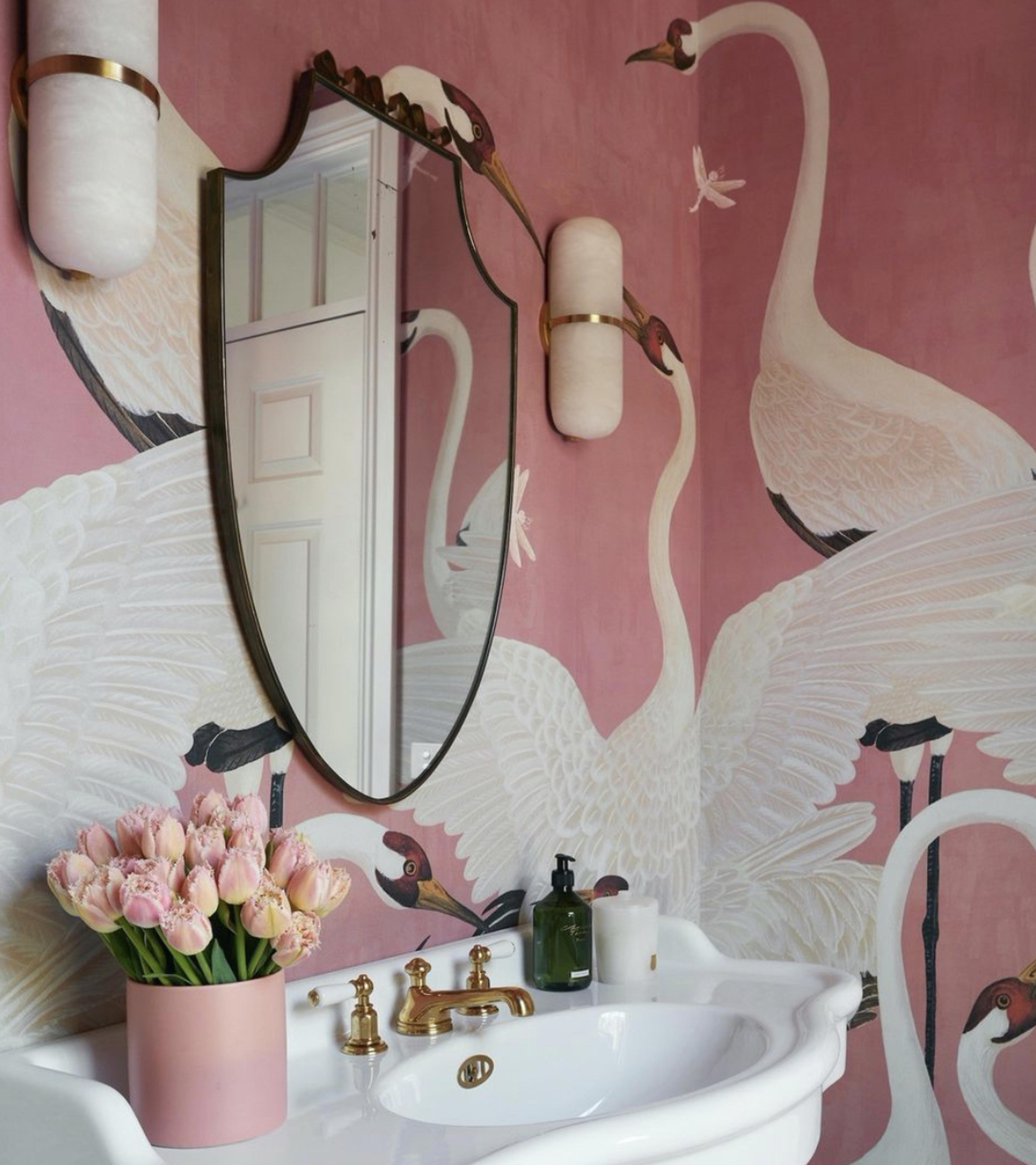 Check out this joyous Gucci Heron wallpaper for inspiration, which complements our polished brass traditional basin set from The English Tapware Company beautifully.