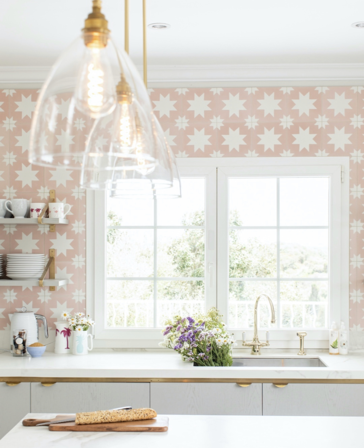 In Laura Butler-Madden’s butler’s pantry, Carnival wallpaper by Christopher Farr Cloth is fun and playful and looks stunning with our aged brass Athenian mixer and a Shaws of Darwen Bowland fireclay sink. The utility room is also designed in the same way featuring our aged brass Polaris 3-in-1 instant hot tap with rinse and a Shaws of Darwen fireclay sink.