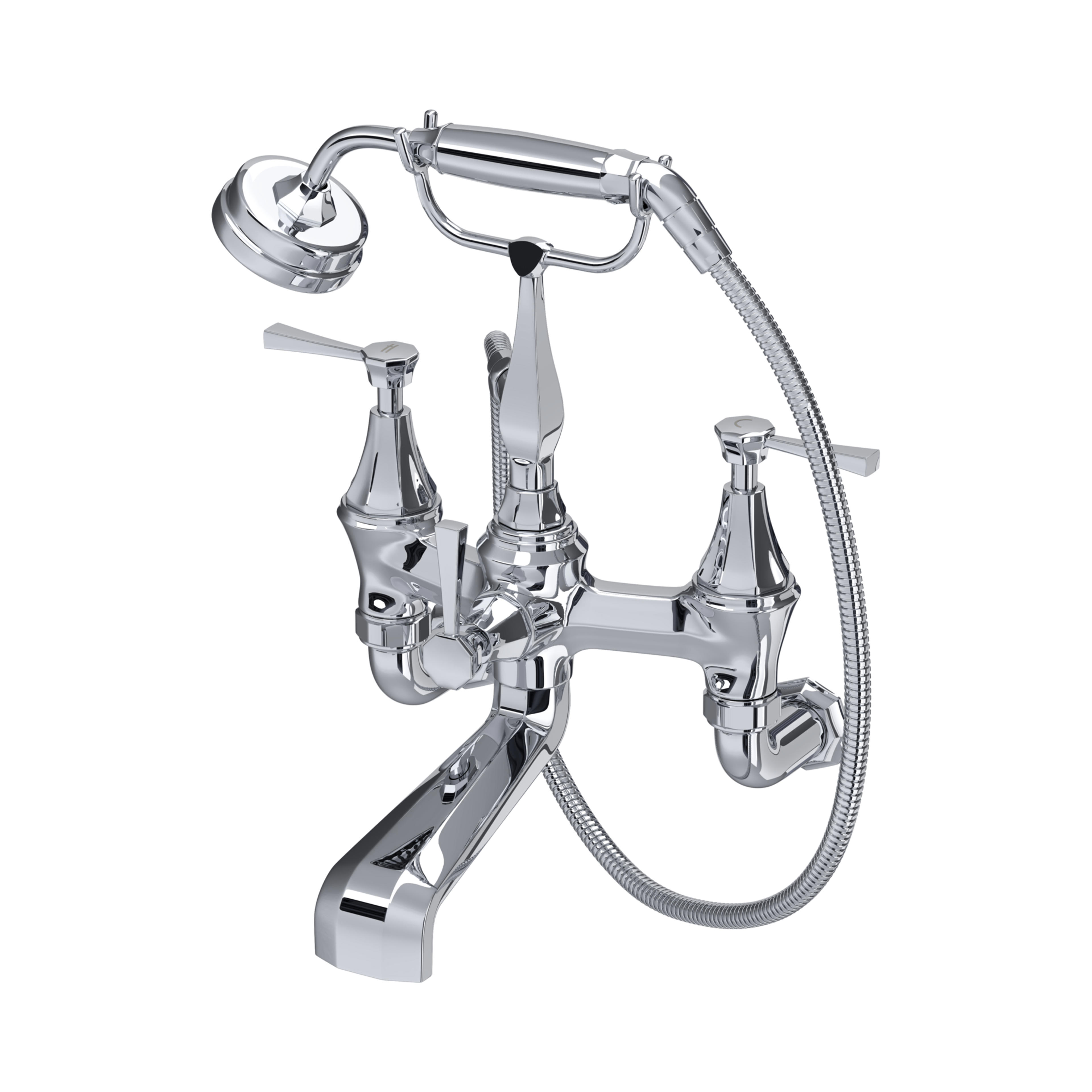 All Perrin & Rowe showers are thermostatically controlled by a highly accurate wax cartridge. This concealed thermostatic mixer from our Langbourn collection features two lever handles and a sleek back plate behind which the valve's pipework is hidden. This version includes a diverter.