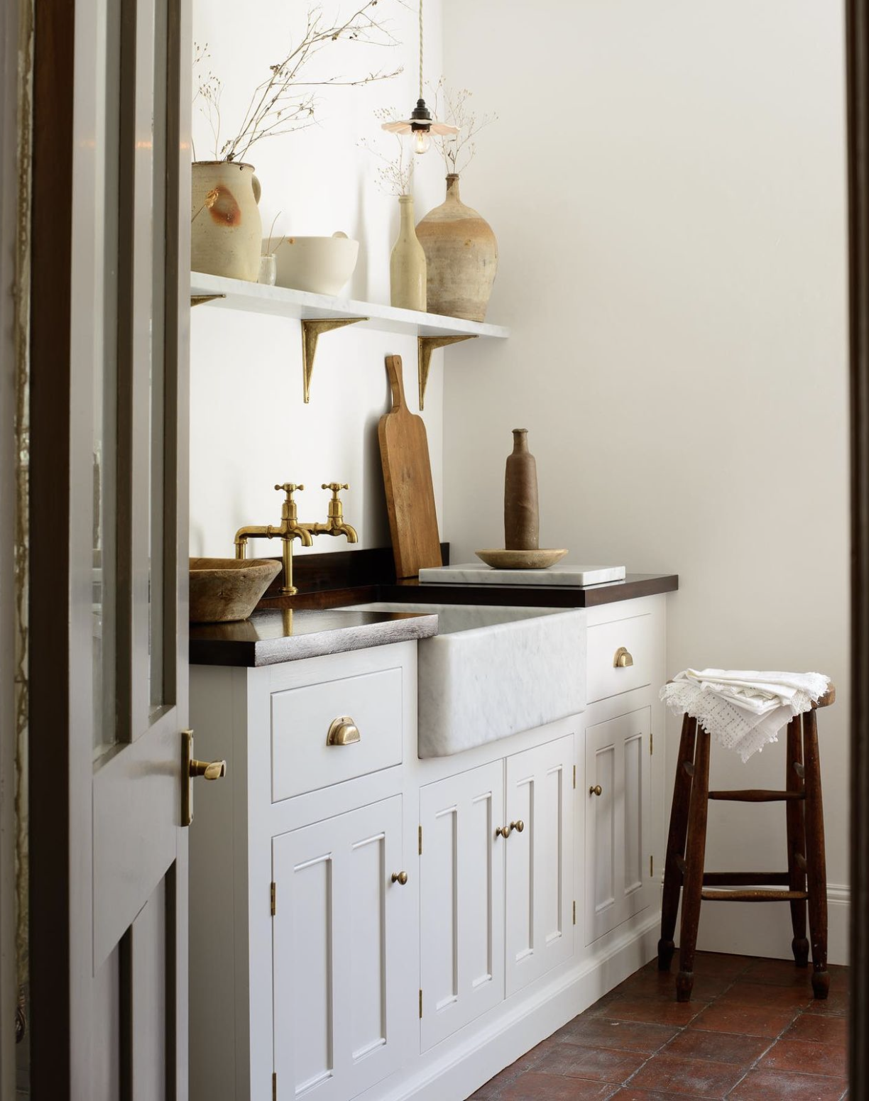 This space by @laurenoliviadesign is warm and welcoming with plenty of white and wood. Our aged brass Parthian mini instant hot water tap looks stunning with the deVOL pendant lighting and oak stools.