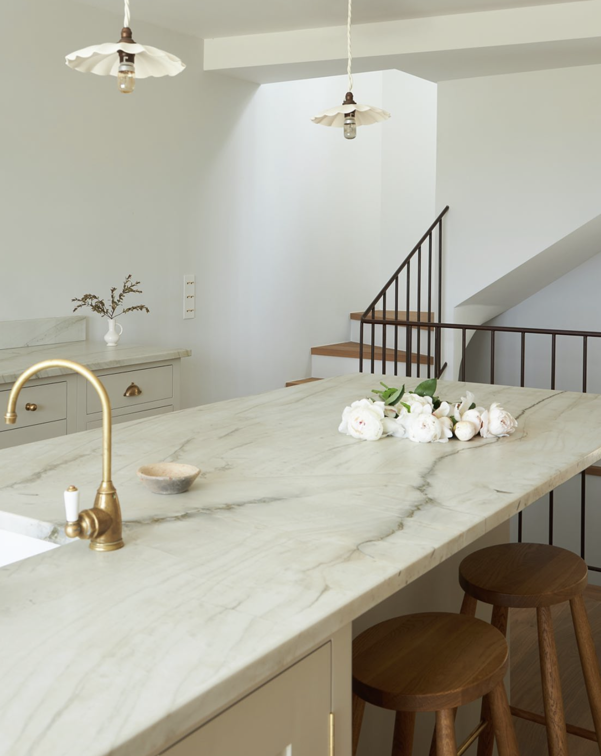 Make bar stools even more comfortable as seen in this kitchen from @lovetearsandteepees. Our Athenian mixer and rinse in polished brass highlights the metallic accents wonderfully.
