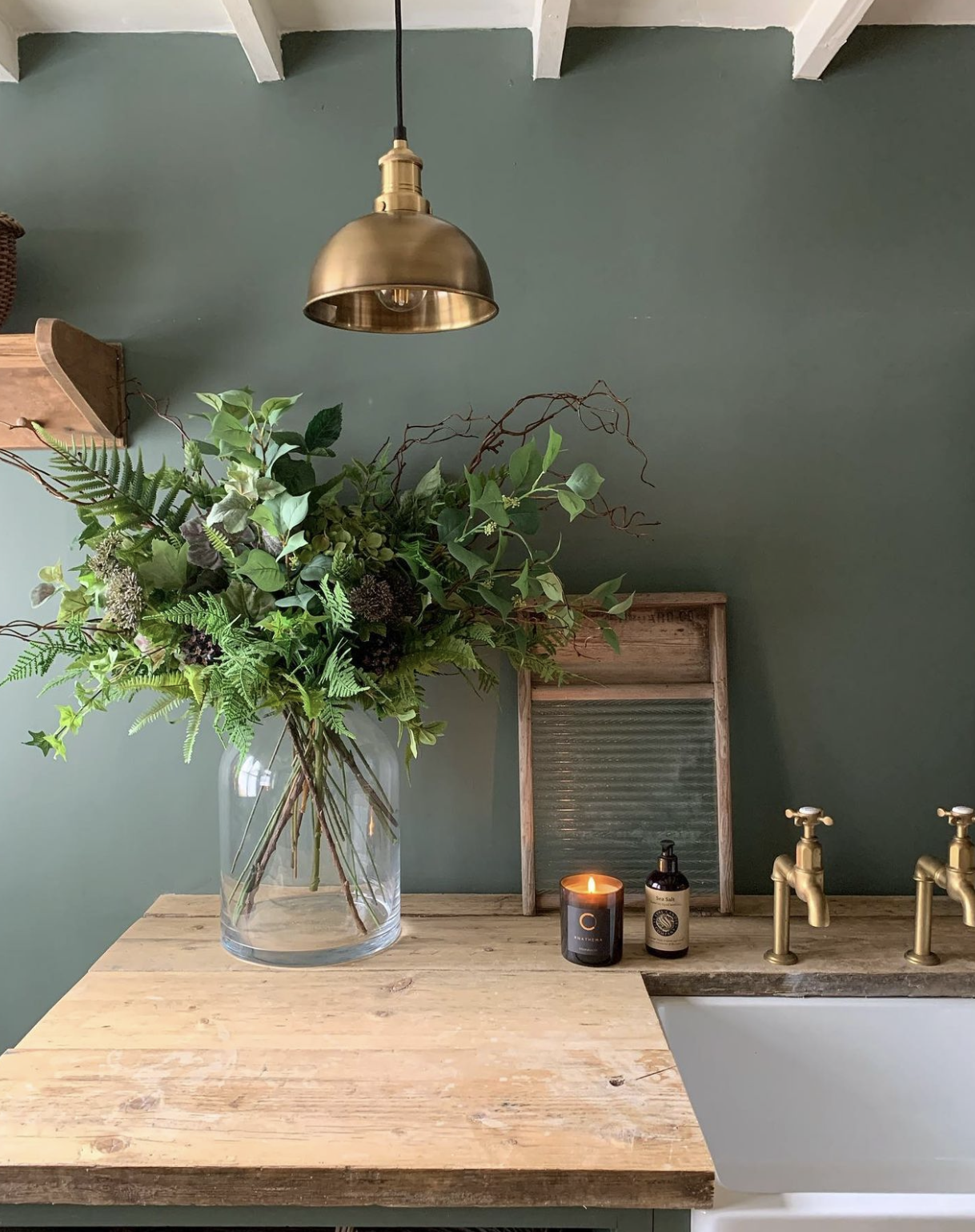 Earthy tones and natural materials including reclaimed wooden worksurfaces and brass taps such as our aged brass Mayan collection can warm up a Scandi-style design as seen in @simplyscandikatie’s home.