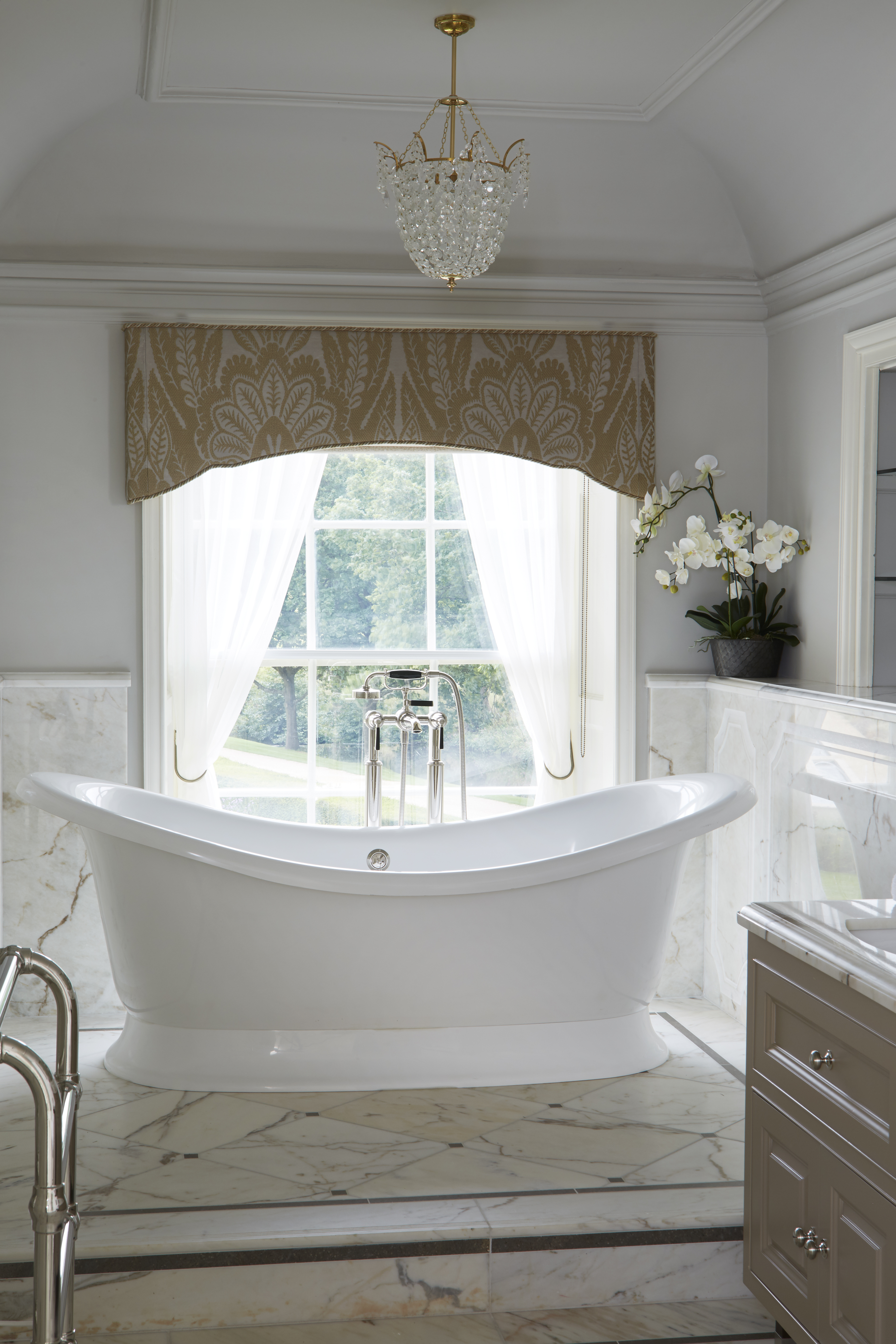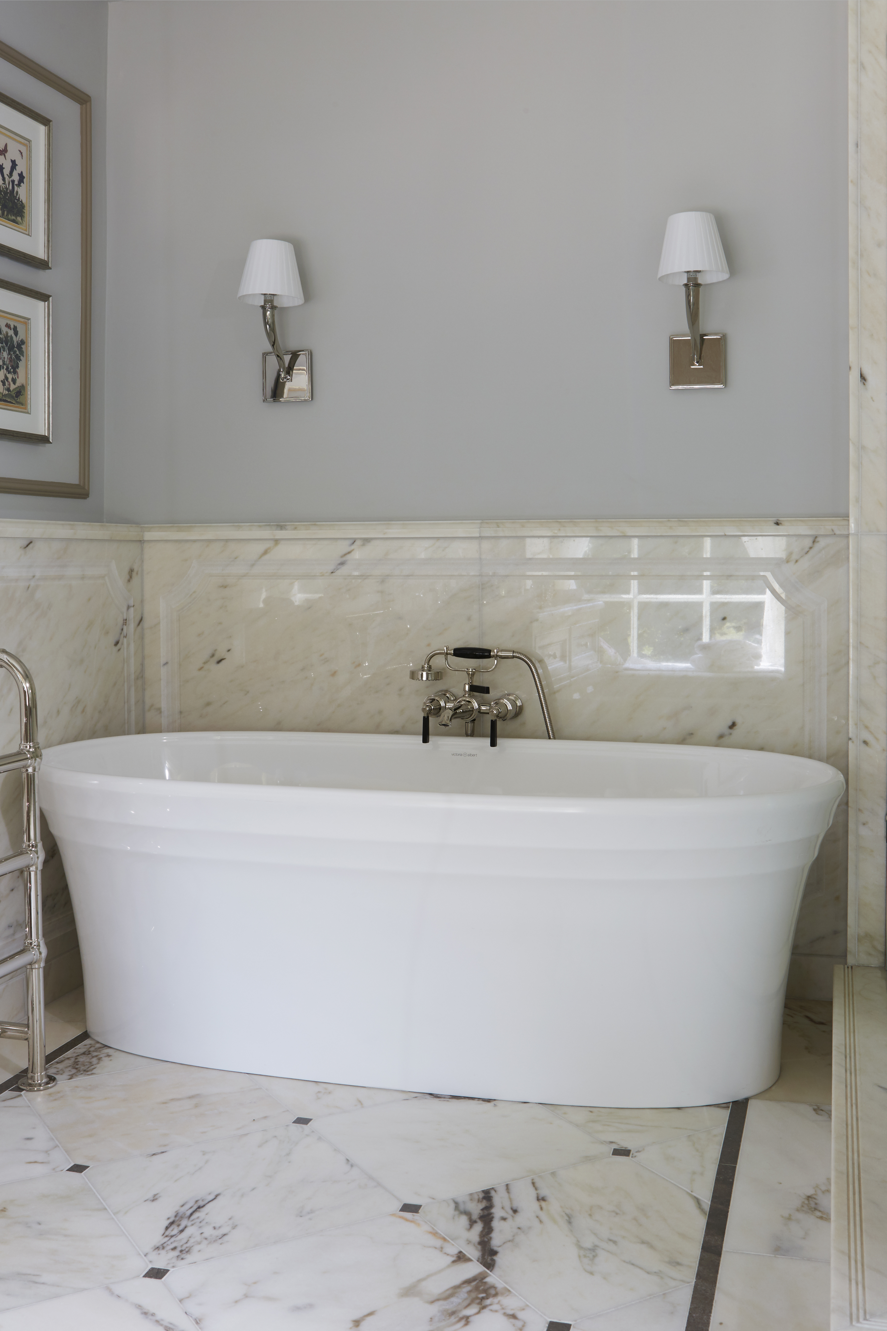 Bedrooms are decorated in elegant muted tones; soft shades of cream, gold and grey; button-back velvet armchairs; marble-topped bespoke furniture; and upholstered bedheads. There are shelves of modern hardbacks, televisions hidden behind paintings, decanters of damson gin, touch-button lighting, and even a bathrobe menu. Bathrooms are marble-clad, with freestanding bathtubs and vast walk-in showers