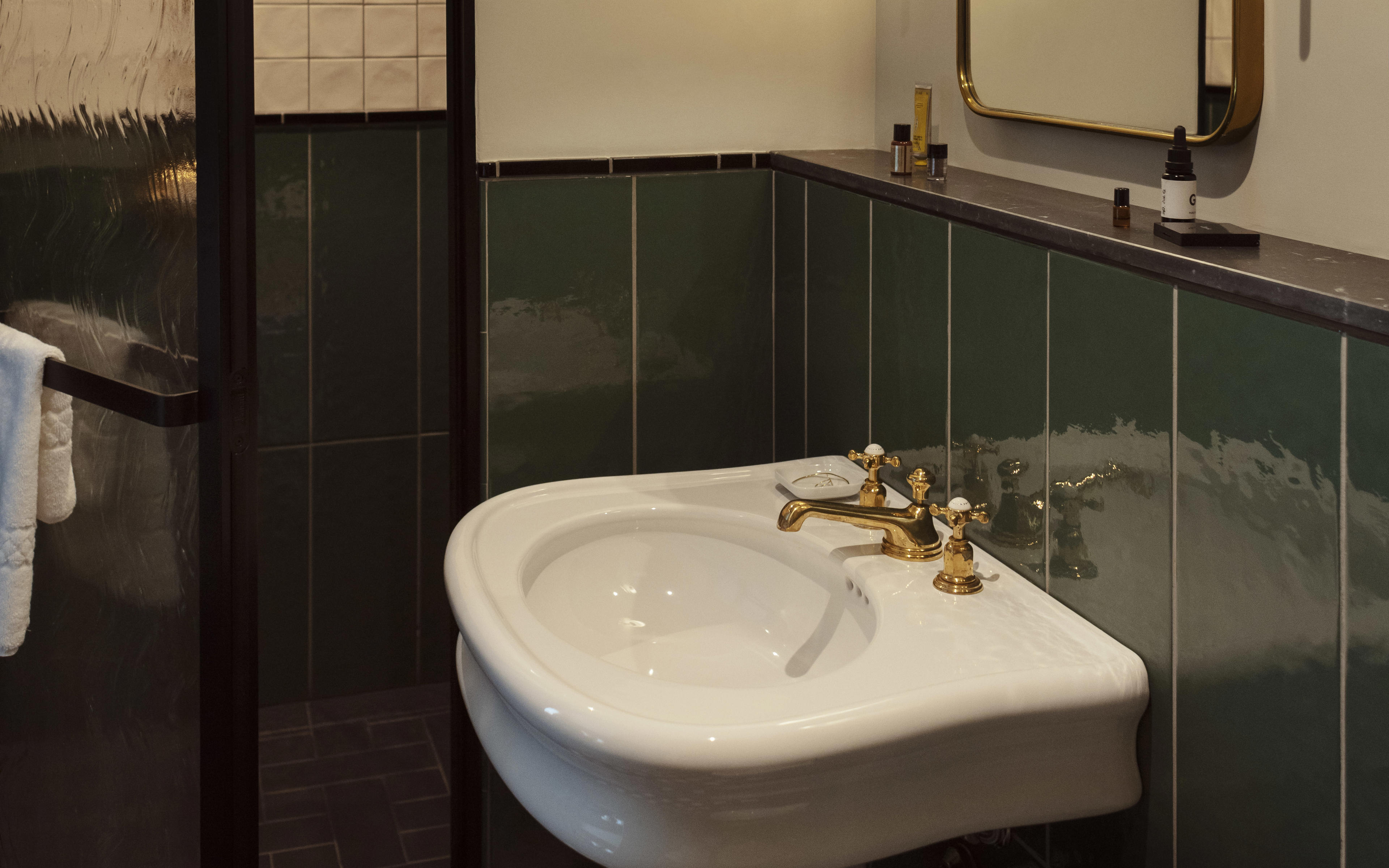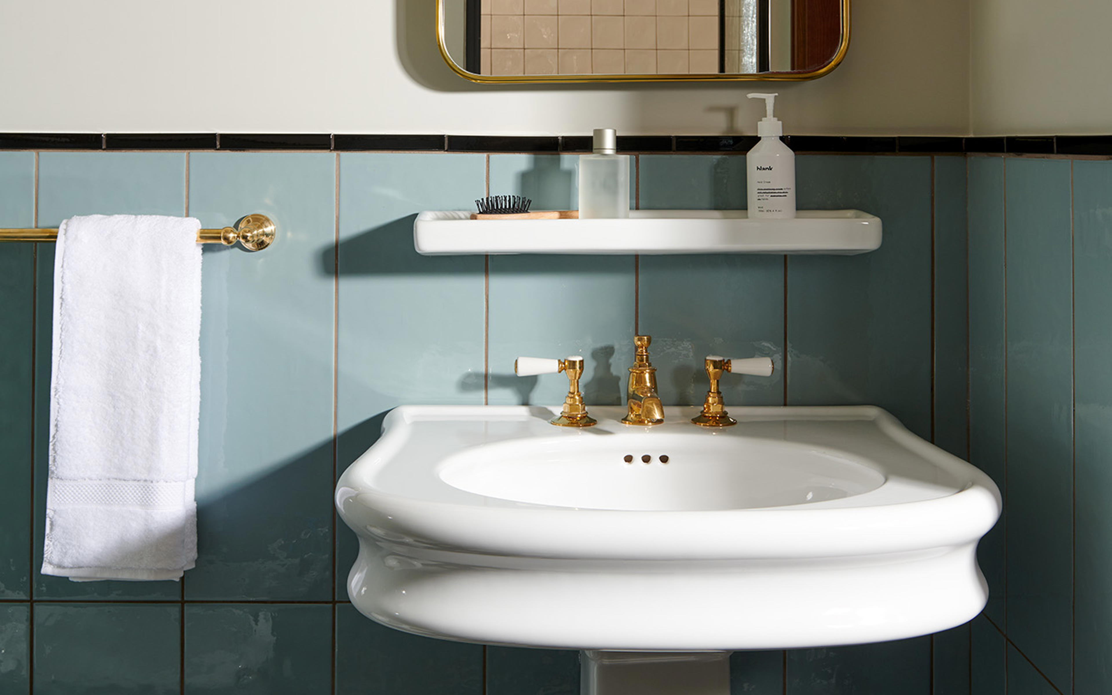 Bathrooms are inspired by the nostalgic interiors of classic Italian cinema, with plush fixtures and fittings including polished brass taps and accessories from Perrin & Rowe’s Traditional bathroom range for a touch of glamour. Luxury hotel bathroom design at its very finest.