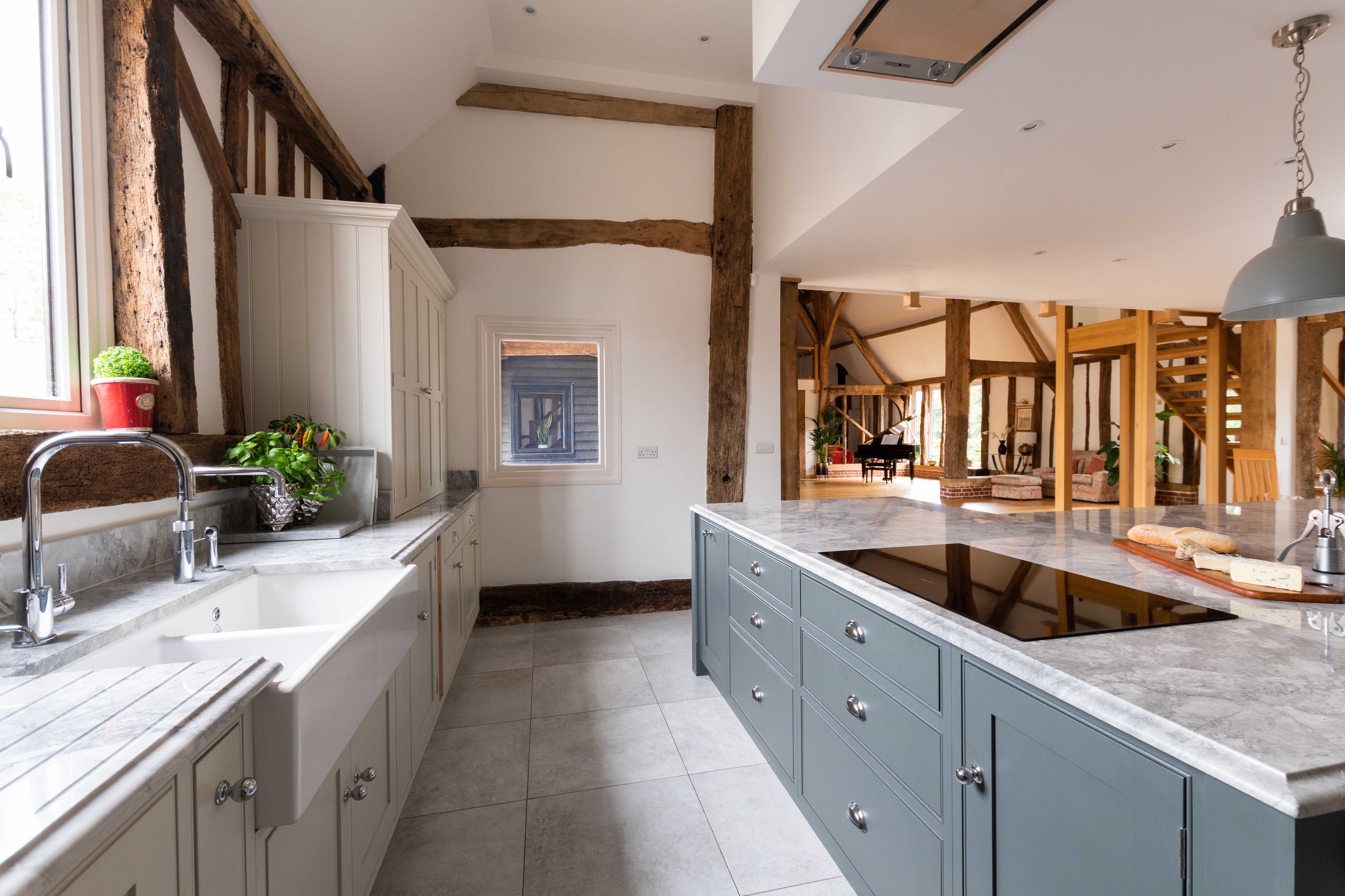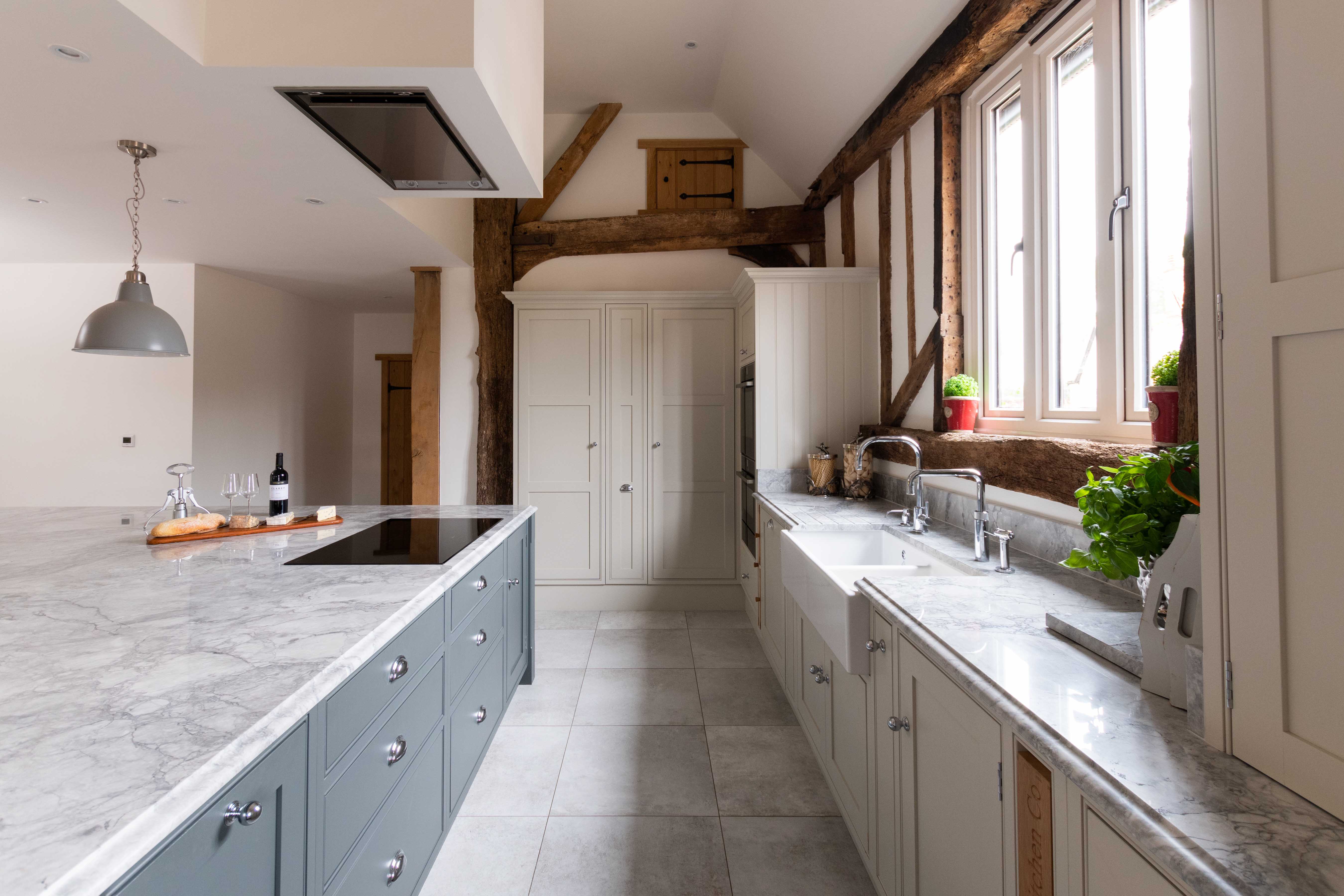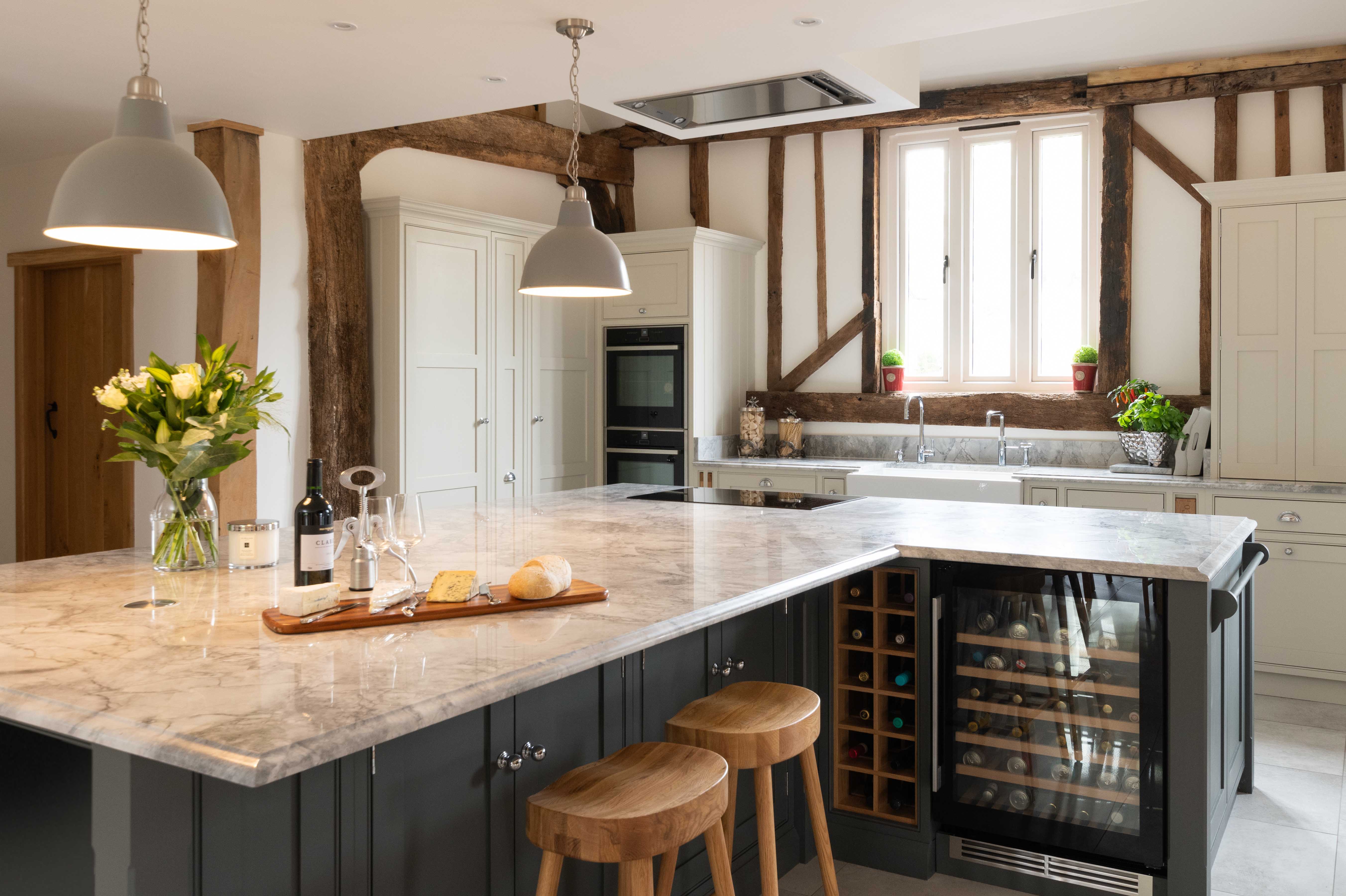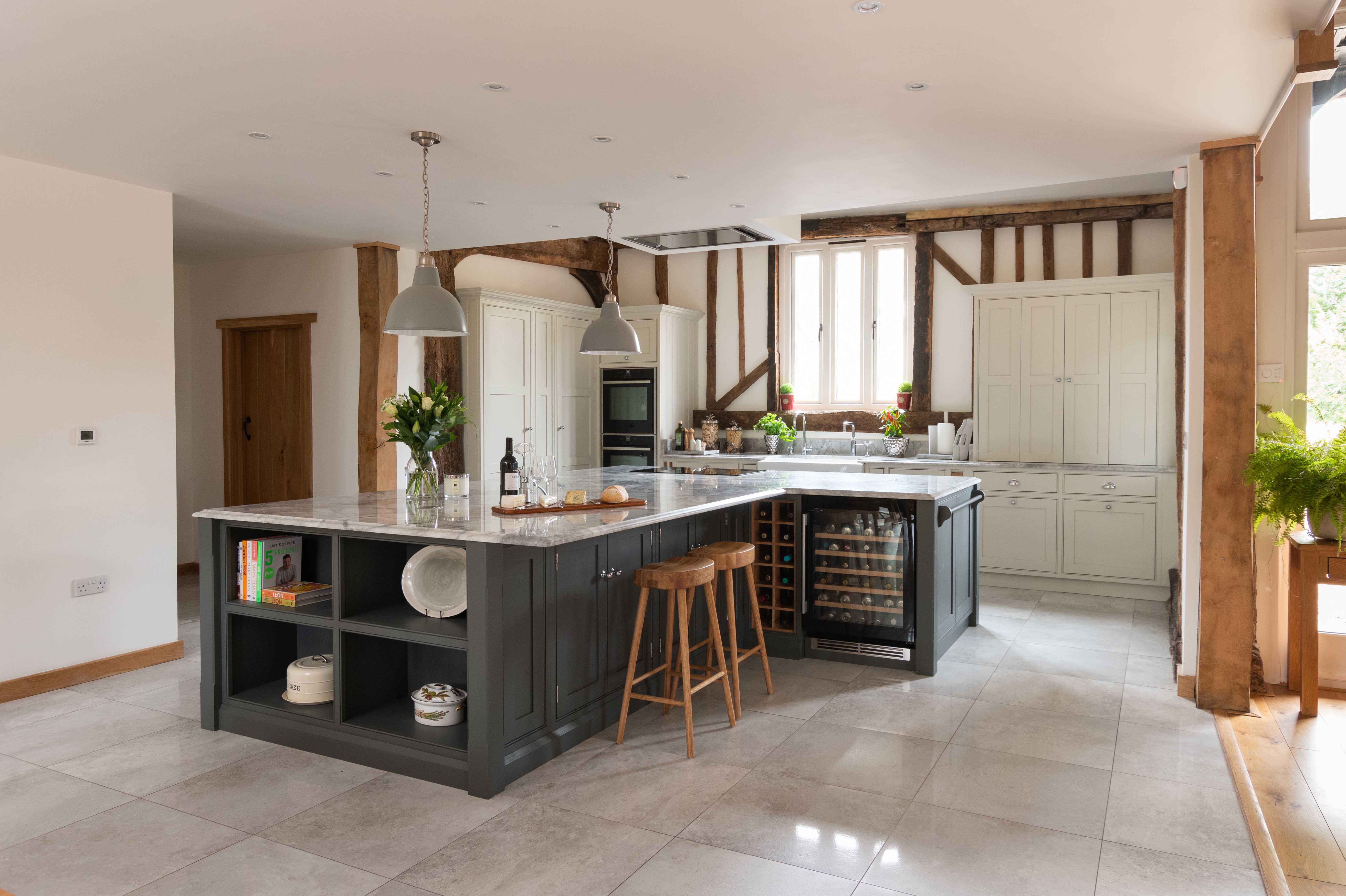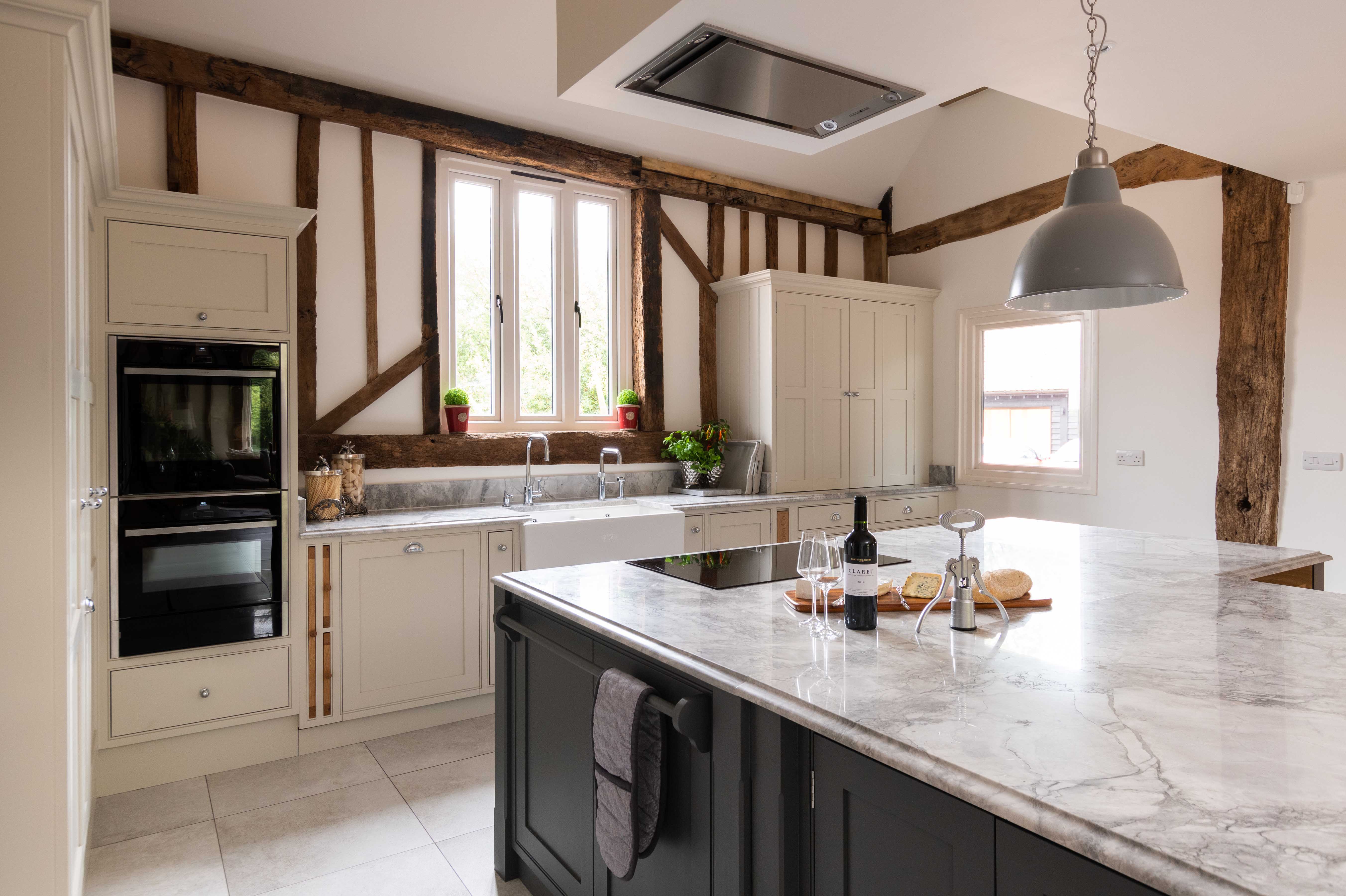 When the owners of a traditional old barn in Little Canfield decided to undertake extensive building work to restore and renovate the property, the kitchen was central in their vision of what a perfect family home should be. The whole kitchen design was inspired by their love of spending time with both family and friends, and was to be a room that they’d love for many years to come. Aesthetically they wanted to create a traditional country kitchen that aligned with the historic feel of the old barn. Yet they also wanted modern, chic touches that kept it contemporary and practical to use.