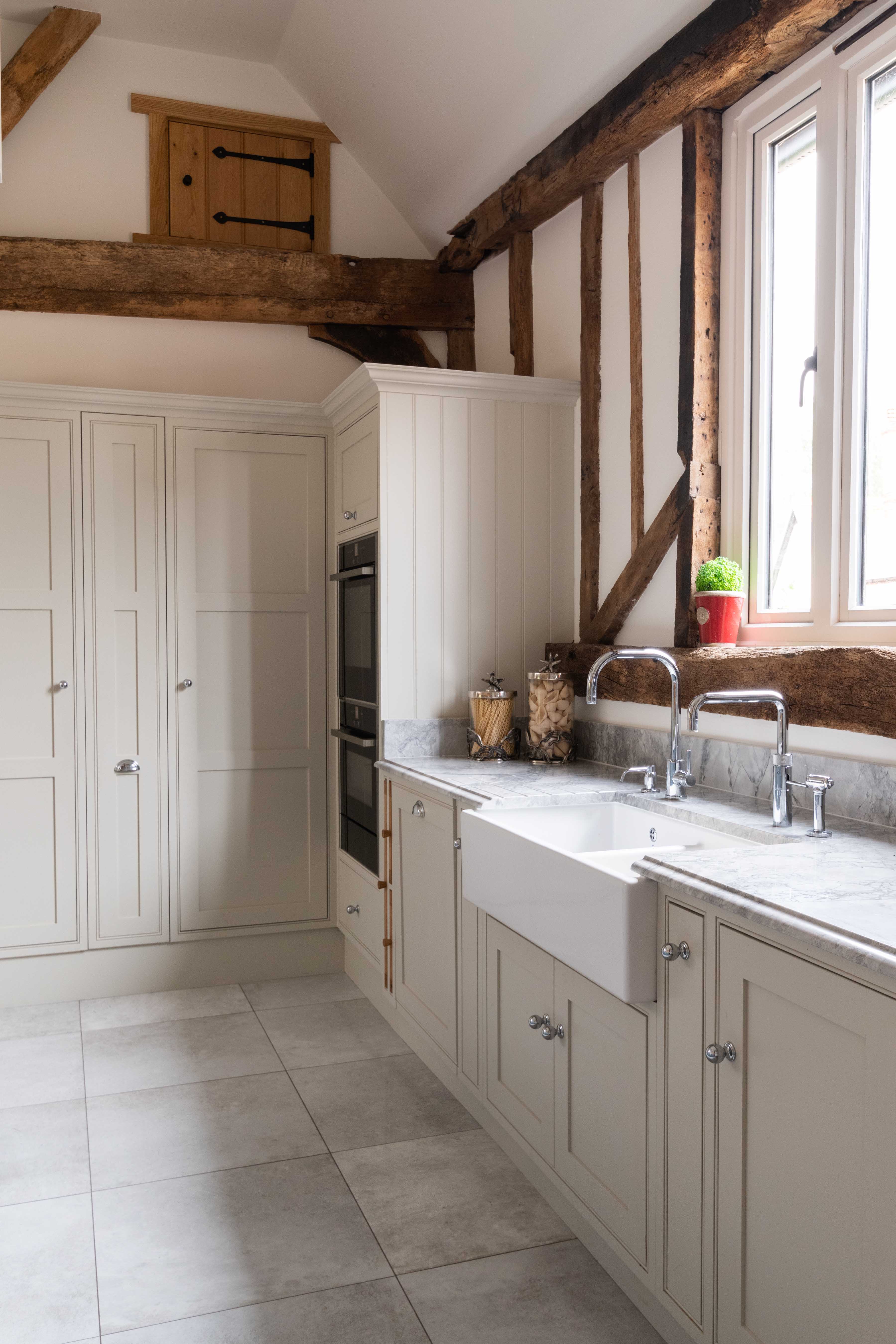 So as instructed, a handcrafted Shaker Double sink by Shaws of Darwen was positioned to take full advantage of the large windows within the room, allowing a perfect view of the outdoors while washing up in its deep spacious bowls.