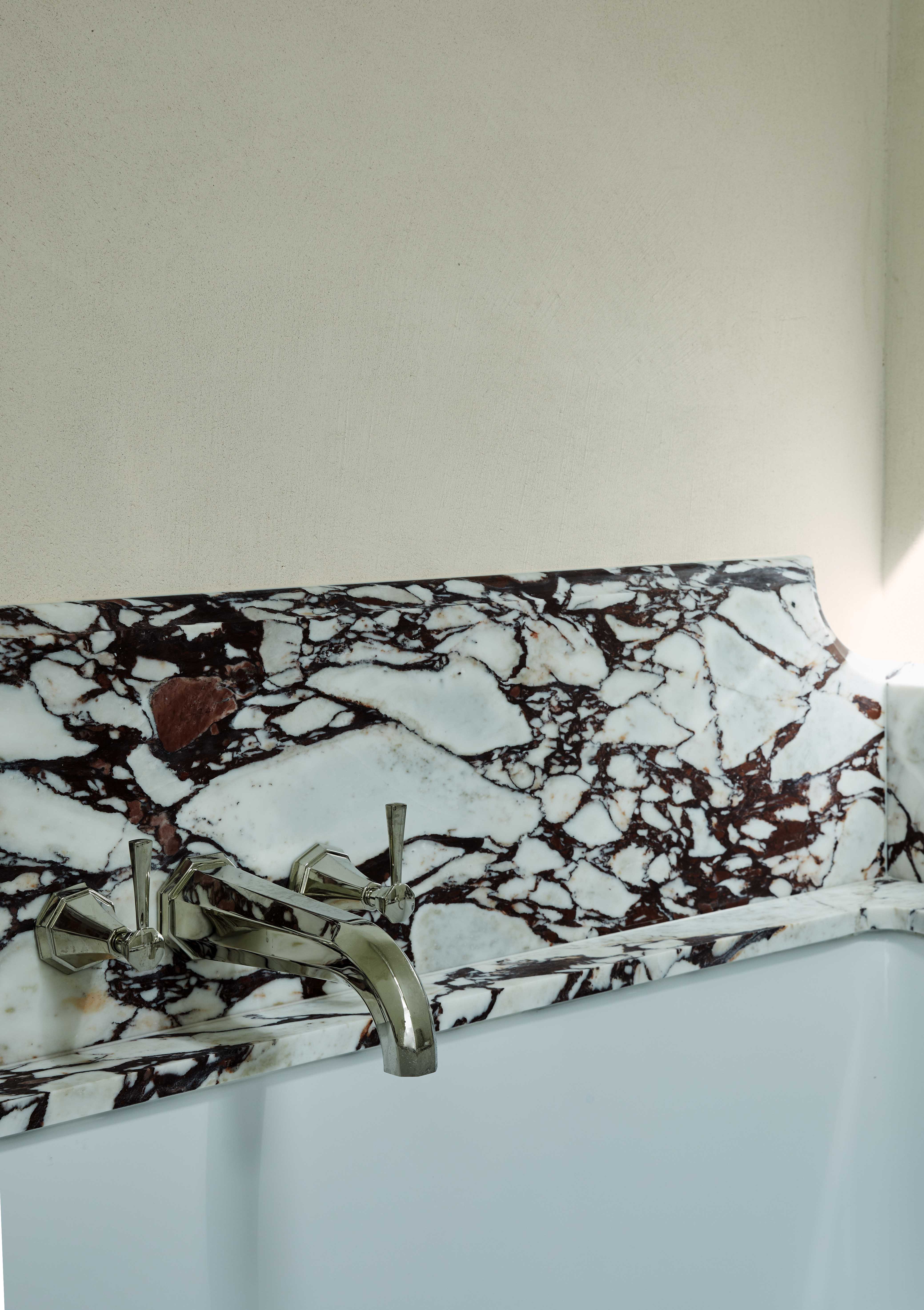 In the bathrooms, the Perrin & Rowe Deco collection has been specified in a Nickel finish; always a popular choice for those that want the sleek look and feel of Chrome but with a warmer aesthetic. The Deco bathroom collection is a beautiful blend of contemporary and traditional, influenced by the style of the Art Deco era. It looks particularly striking when teamed with veined marble as the designer has done in this home.