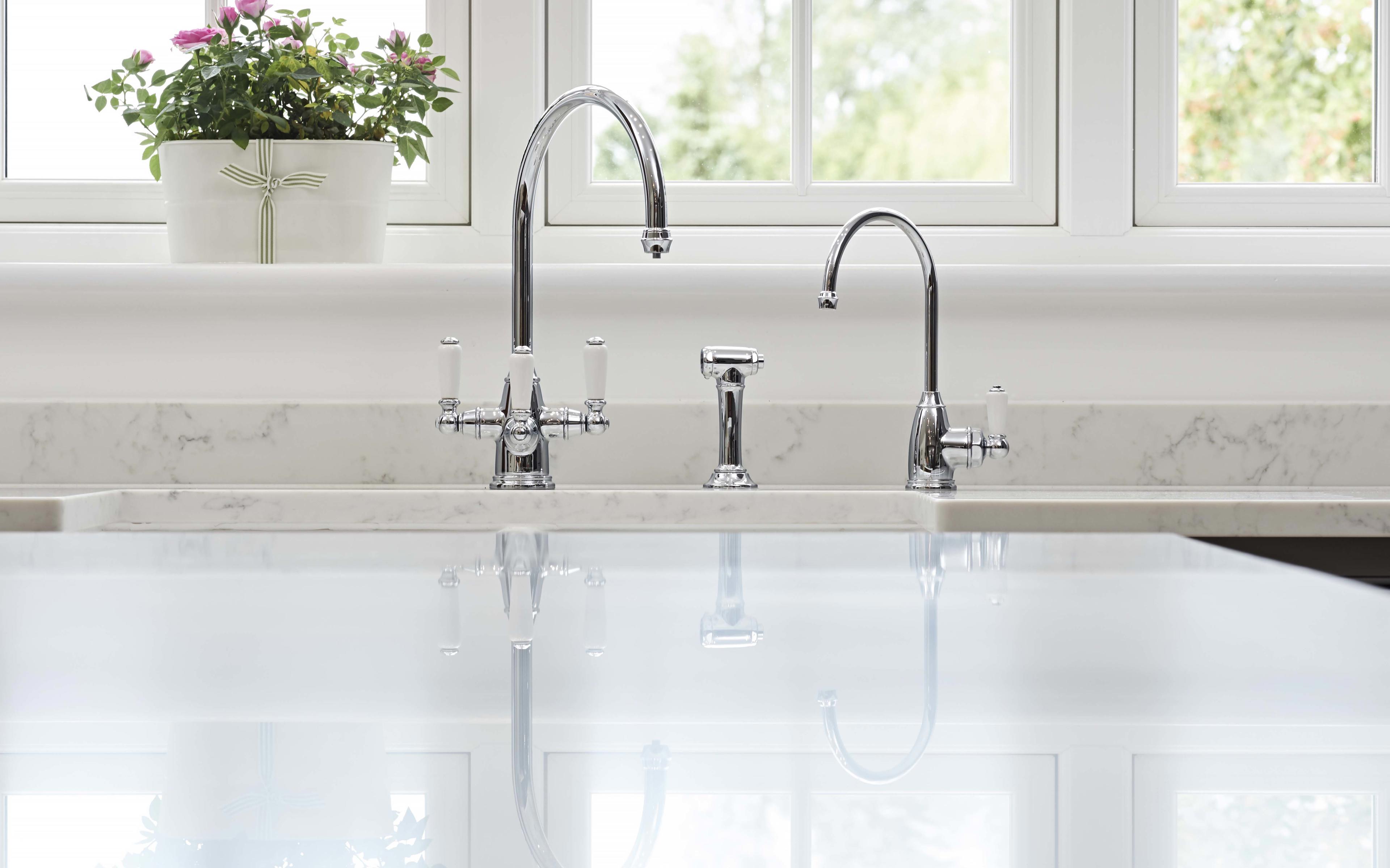 Beautifully classic in style, without compromising on technology, the Phoenician mixer with built-in filtration is offers hot and cold water as well as filtered drinking water from a separate lever. This version also comes with a deck-mounted side rinse, for rinsing the sink as well as cleaning pots and pans.