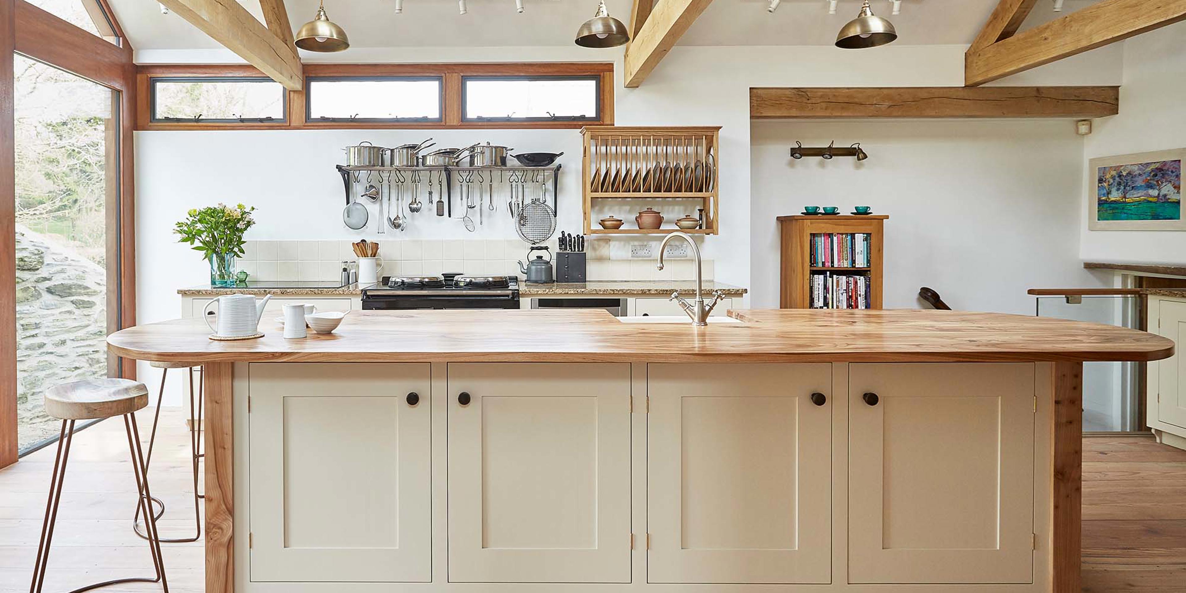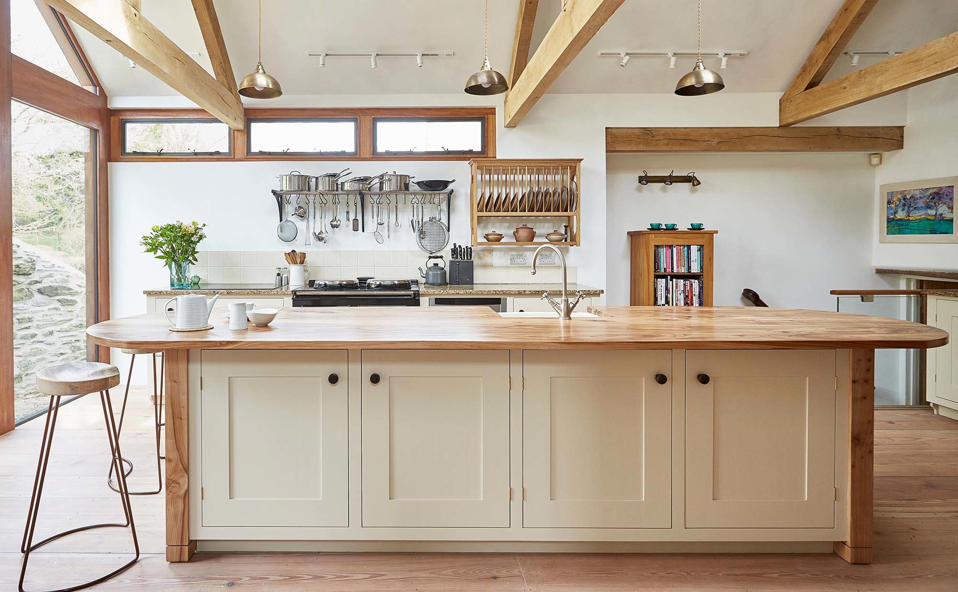 A holiday conversation led Barbara and Trevor Paul to a bold decision that their listed, 16th Century cottage kitchen should be reduced to rubble; in its place they had a vision for a much larger kitchen space that could link to an existing barn on the property. Having discussed their ideas with both their architect and with the interior design team at Barnes of Ashburton, they decided to refurbish and re-use as much of the existing sink, brassware and cabinetry as possible to form the basis of the new kitchen.