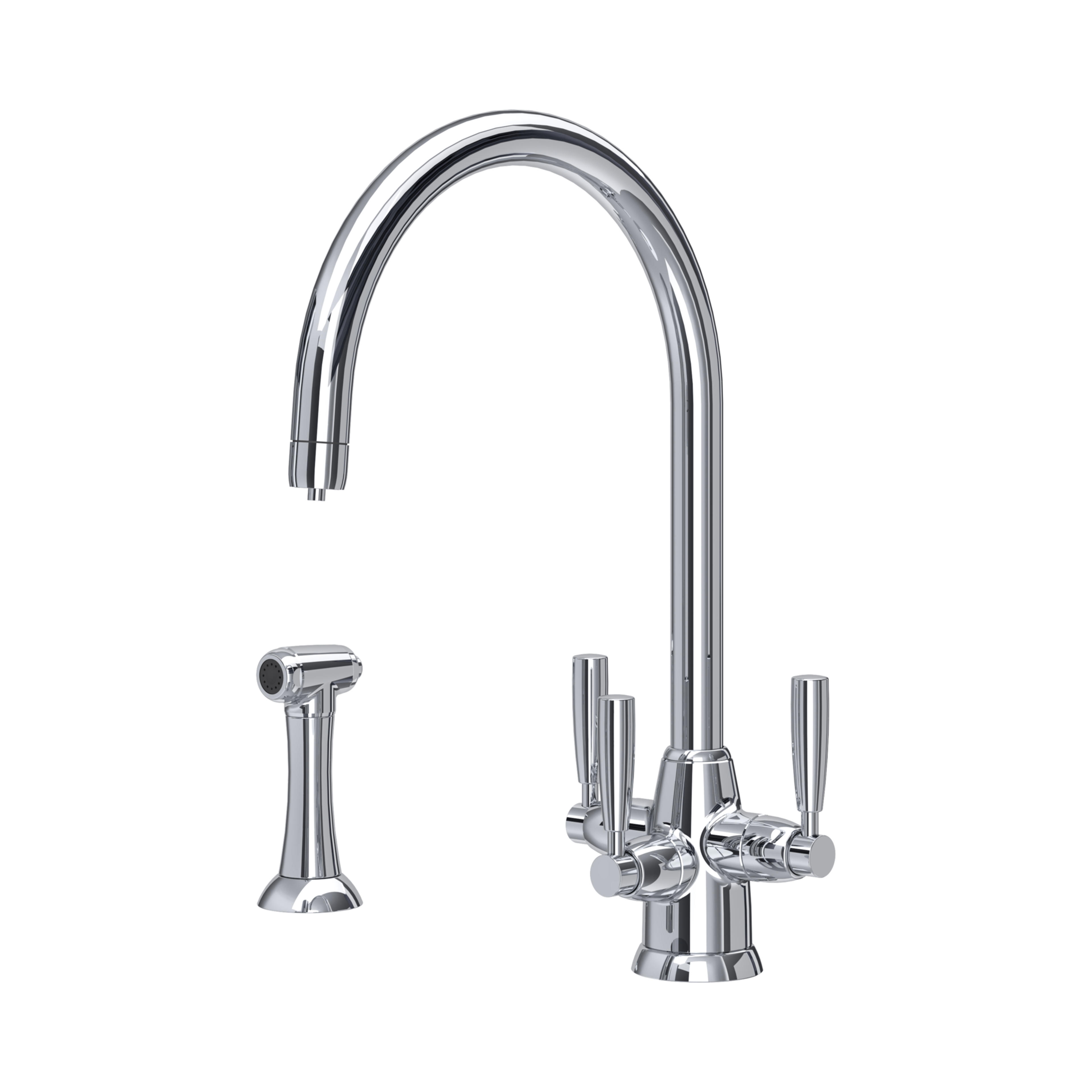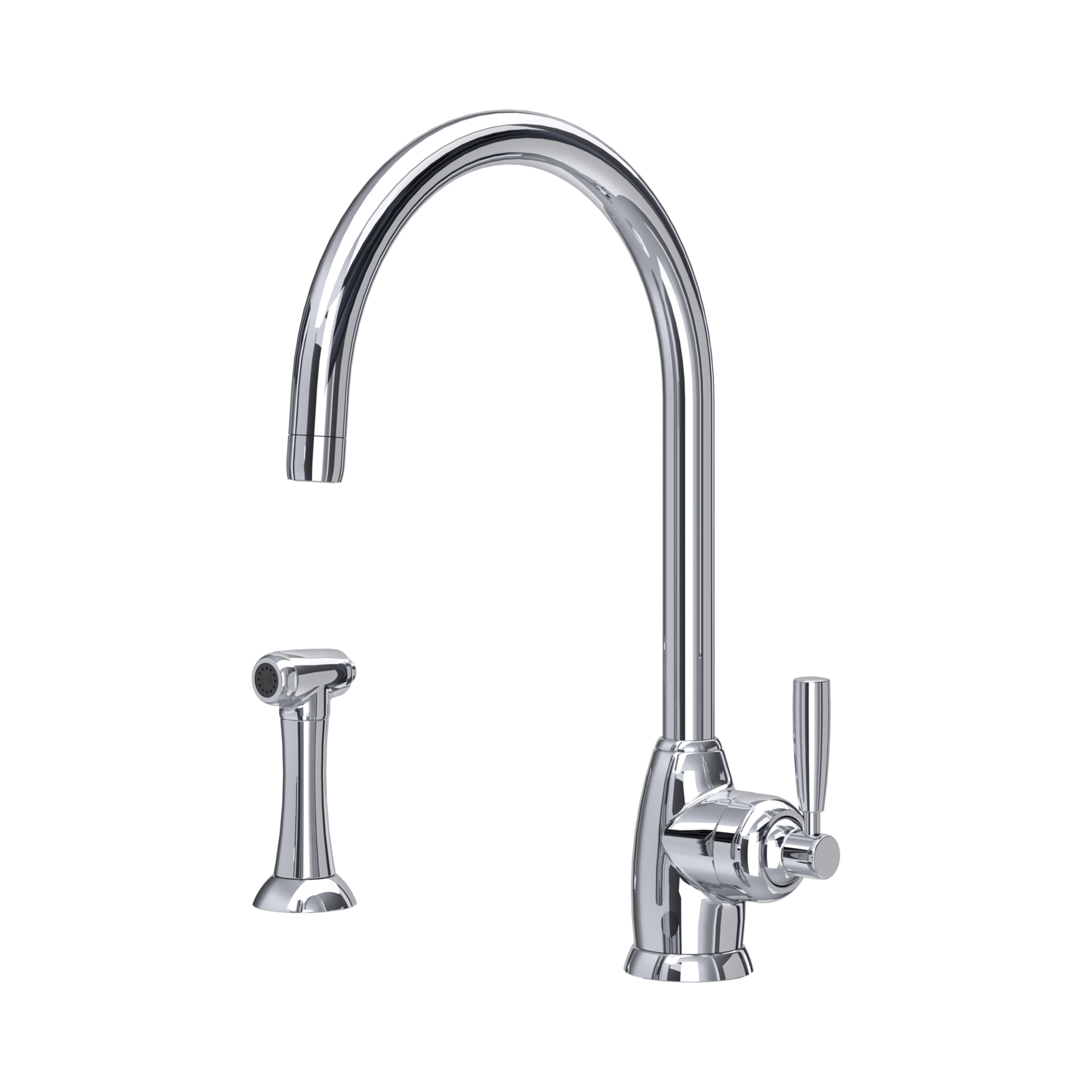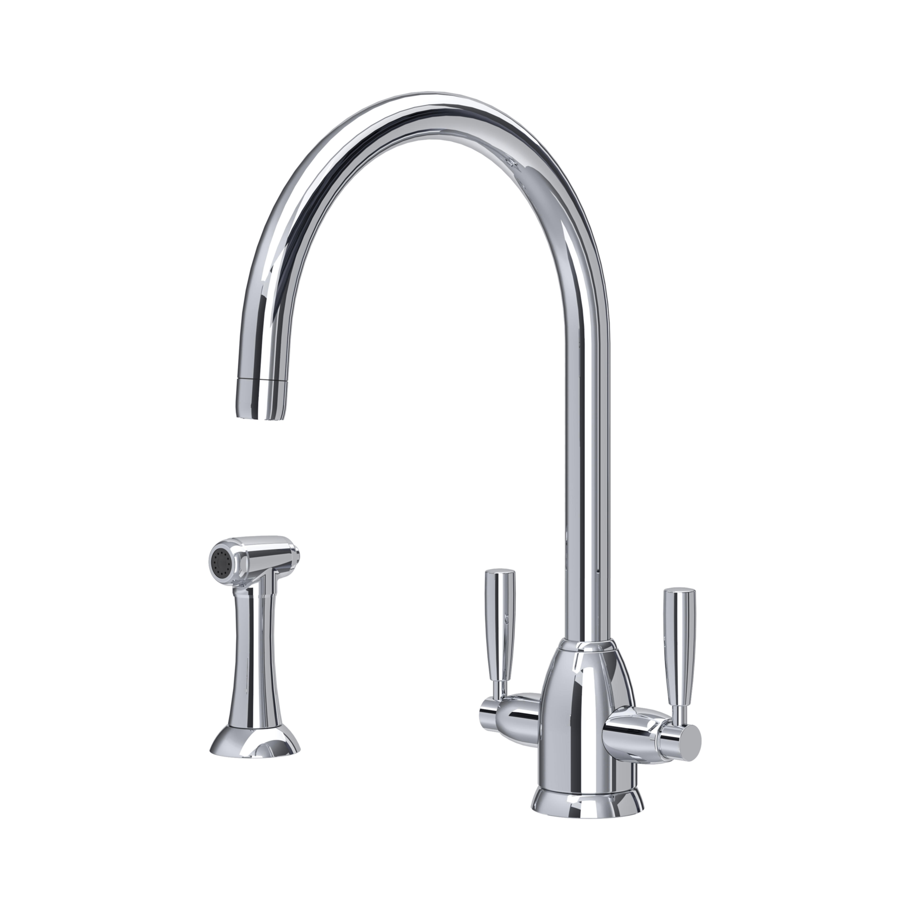 Le mitigeur d’évier monobloc Langbourn offre des lignes douces et élégantes, avec un bec courbé en forme de C et un levier unique facile à utiliser pour un rendu contemporain, idéal pour les cuisines modernes. Cette version est dotée d’une douchette latérale de rinçage très utile.